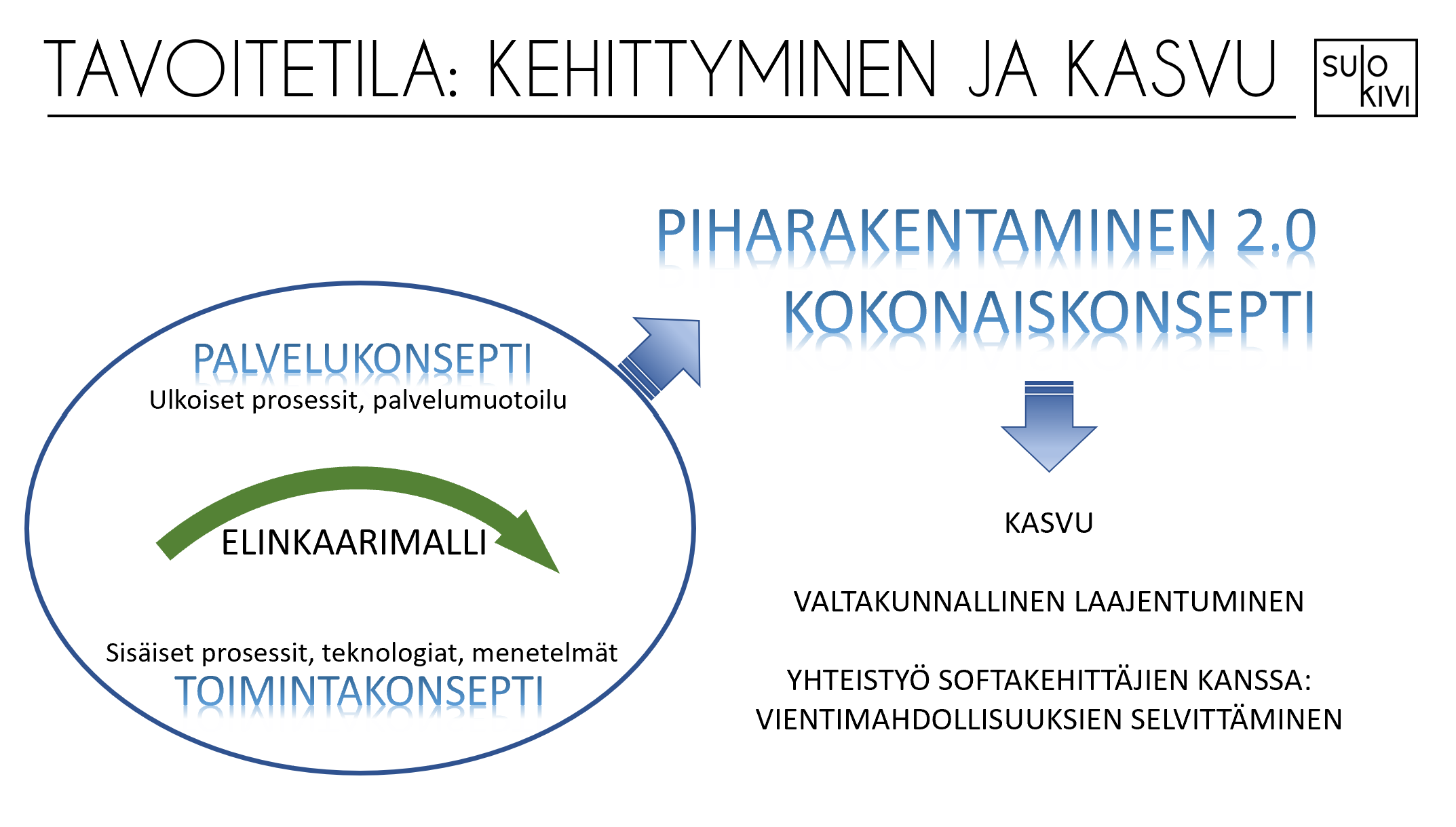 Hankkeen tuloksena Sulokivelle kehitetään Piharakentaminen 2.0 kokonaiskonsepti, jossa yhdistyvät Palvelukonsepti (= ulkoiset prosessit & palvelumuotoilu) ja Toimintakonsepti (= sisäiset prosessit, teknologiat, menetelmät).Yritys tulee hankkeen myötä ottamaan käyttöön sellaista uutta teknologiaa, jota ei ole aiemmin ollut käytössä ja joka parantaa yrityksen kilpailukykyä ja erottautumista kilpailijoista. Sulokivelle haetaan strategista kilpailuetua mm. etsimällä alan uusimmat huipputeknologiat ja integroimalla niistä parhaiten soveltuvat Sulokiven liiketoimintaan. Lopputuloksena Sulokivi on alan edelläkävijöiden kärkijoukossa. Tästä syntyy syvää toimialaosaamista, jolla on markkina-arvoa kahdessa mielessä: 1) Piharakentaminen 2.0 kokonaiskonseptin avulla voidaan käynnistää kannattavaa liiketoimintaa eri puolelle Suomea 2) Etsimällä sopivat softapuolen yhteistyökumppanit, Sulokivi voi toimia toimialaosaamisen asiantuntijana ja ”koekenttänä” esimerkiksi toimialaspesifin kokonaistoiminnanohjausjärjestelmän kehittämisessä.